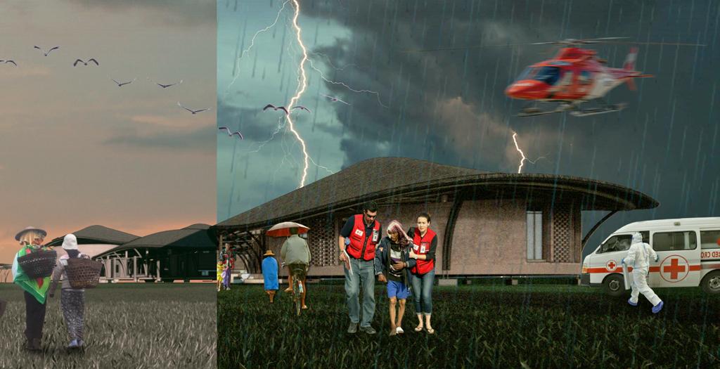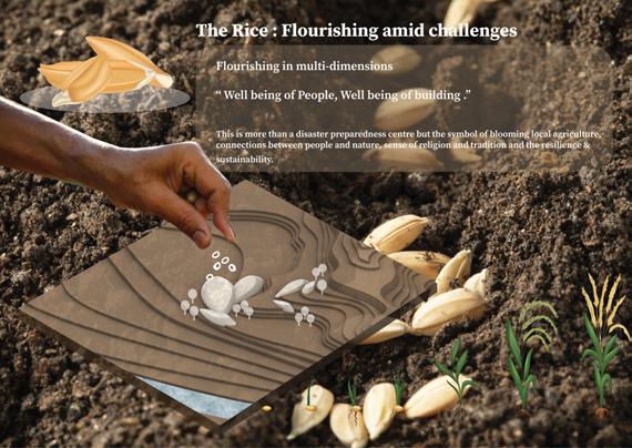 Inspired by Myanmar’s resilience post-2008 Nargis Cyclone, this project aims to be a tribute to endurance; it speculates a time when disasters foster wealth and readiness rather than hopelessness.This hub is more than a disaster preparedness centre – it’s a celebration of local agriculture, connecting people with nature and empowering a thriving future. spaces which can be transformed into an evacuation shelter and aid storage during emergencies, fostering self-reliance and community support.