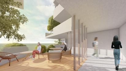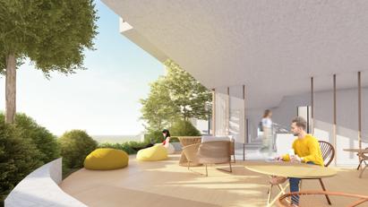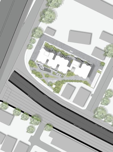 The facade concept and building architecture have been carefully developed to reflect the cultural character and existing patterns of the neighborhood, ensuring the project blends seamlessly into the town. At the same time, the dynamic building appearance and accessibility symbolize its role as a public building.