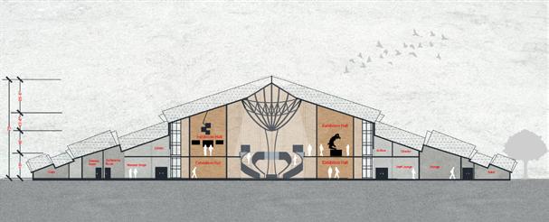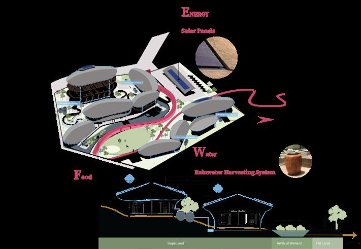 The design approach is derived from analyzing large-scale accessibility and surrounding programs for two main purposes: first, to operate as an educational awareness center in this rural area, and second, to create efficient human displacement and evacuation protocols during emergencies.