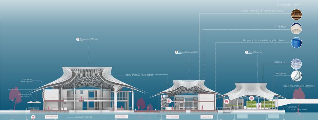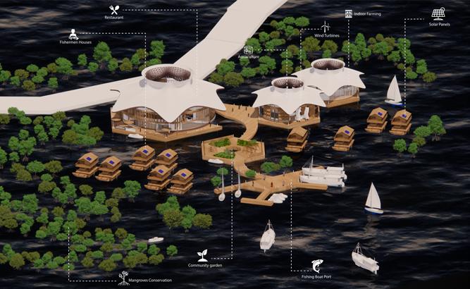 CThe main focus of the project is to develop a potential floating city in response to extreme flood problems and coastal erosion issues in the Bang Khun Thian Coastline area. The group proposes a masterplan that integrates six programs which fulfil the nees of the local people and supporting infrastructure, addressing the unique needs of the local community.