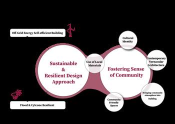 Architecture - The humble and low-lying architectural form fulfils the function of being high-resistant to wind leading to aim of creating a cyclone resistant architecture.