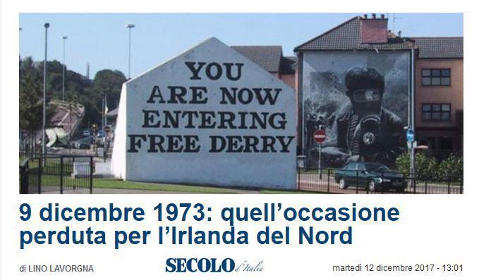 “Il Governo Irlandese ha pienamente accettato e solennemente dichiarato che non vi sarebbe stato alcun cambiamento nello status dell’Irlanda del Nord fino a quando la maggioranza del popolo dell’Irlanda del Nord non avesse desiderato un cambiamento di tale status. Il Governo Britannico ha dichiarato solennemente che la sua politica è sempre stata quella di sostenere la volontà della maggioranza del popolo dell’Irlanda del Nord e tale sarebbe rimasta. Attualmente l’Irlanda del Nord è parte del Regno Unito. Se in futuro la maggioranza del popolo dell’Irlanda del Nord dovesse esprimere il desiderio di diventare parte di una Irlanda unita, il Governo Britannico sosterrebbe tale desiderio”.