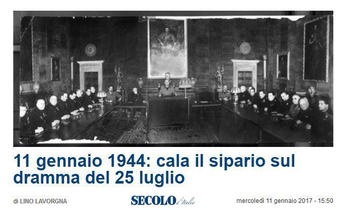 Sono trascorsi settantatré anni da quell’alba nebbiosa che vide cinque gerarchi fascisti ascoltare, come ultima parola della loro esistenza terrena, quella più terribile: “Fuoco!”. A pronunciarla fu un anonimo ex sergente della milizia fascista, Nicola Furlotti che, assurto al grado di maggiore nel periodo della Repubblica Sociale, si trovò a coordinare il servizio pubblico durante il processo di Verona e poi a comandare il plotone di esecuzione. Si conquistò, in tal modo, un po’ di spazio nella cronaca e nella storia, amplificato dalla pubblicazione di un memoriale che, tra le inevitabili distorsioni presenti in tutti i memoriali, offre una lettura abbastanza realistica di una vicenda che oggi può essere scandagliata senza pregiudizi. Essendo impossibile ripercorre tutte le fasi che culminarono con la fucilazione di Galeazzo Ciano, Emilio De Bono, Luciano Gottardi, Giovanni Marinelli e Carlo Pareschi, in questo articolo ci proponiamo solo di rispondere a una semplice domanda: “Sotto il profilo meramente giuridico, il processo fu legittimo?”. Fare i conti con la propria storia è sempre opportuno e doveroso, soprattutto nei confronti delle giovani generazioni. Tutto ebbe inizio, come sappiamo, il 24 luglio 1943, con la riunione del Gran Consiglio del Fascismo, composto da ventotto fedelissimi gerarchi, che al Duce dovevano tutto: onori, ricchezze, ribalta nazionale e internazionale. Non si riunivano da quattro anni: quando vi è un uomo solo al comando le riunioni previste dagli organi istituzionali si trasformano in mera formalità e tanto vale, pertanto, ridurle al minimo indispensabile. La gravità delle circostanze, tuttavia, con il paese in macerie e il nemico sbarcato sul patrio suolo già da quattordici giorni, indusse il Duce a convocare il Gran Consiglio su richiesta di Dino Grandi, a sua volta sollecitato dal Re a creare i presupposti affinché fossero restituiti alla Corona tutti i poteri costituzionali. L’ordine del giorno, che prevedeva il ripristino "di tutte le funzioni statali" e l’invito a restituire il comando delle Forze Armate al Re, era stato preventivamente letto e approvato dal Duce, nonostante fosse stato giudicato “inammissibile e spregevole”. La mozione fu approvata con 19 voti a favore, 7 contrari e l’astensione dell’avvocato massone e Presidente del Senato Giacomo Suardo. Roberto Farinacci, che aveva presentato un suo ordine del giorno, uscì dall’aula e non votò. Mussolini, che evidentemente non si aspettava il voto a lui sfavorevole, chiuse la seduta con la famosa frase: “Avete provocato la crisi del regime. Avete ucciso il fascismo. La seduta è tolta”. Erano le 2,40 del 25