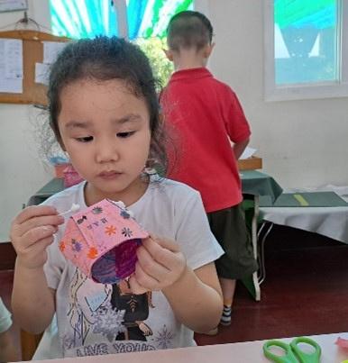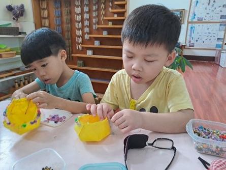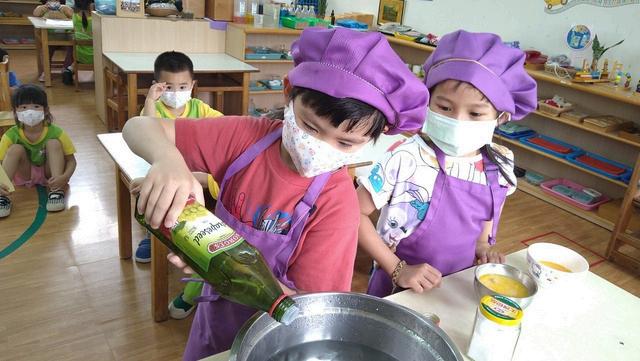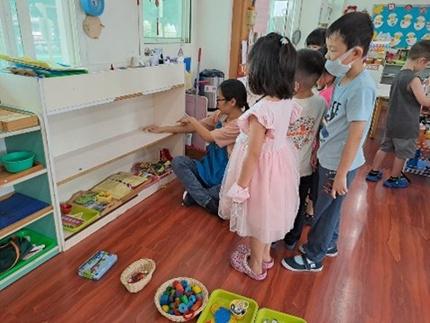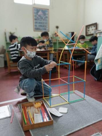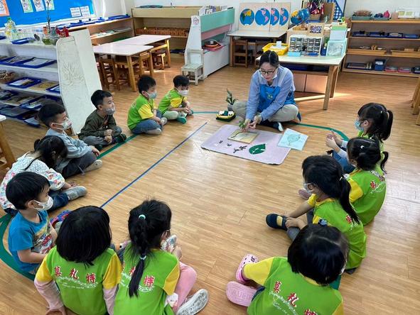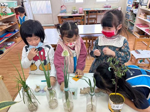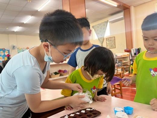 將茶樹、薄荷精油加⼊⽔中可以清潔教室和教具櫃,大家 ⼀起保護環境像家⼀樣珍惜。
