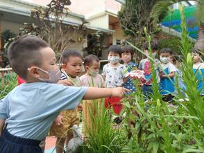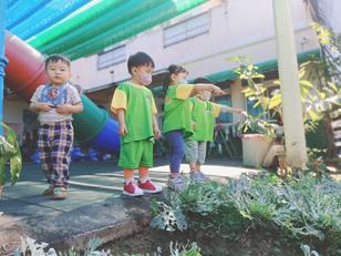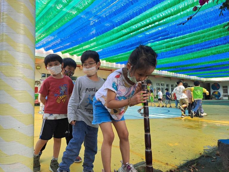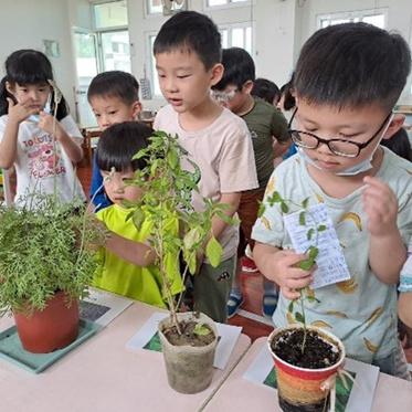 帶領幼兒到校園中,觀賞不同樹⽊、 花草的葉⼦形狀! 藉由葉形櫥,帶⼊葉⼦形狀的認識,並透過嗅覺,聞⼀聞