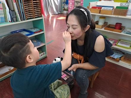 家⻑們⾮常勇於挑戰孩⼦們畫的妝容,真的是很感動的時 刻啊~!!