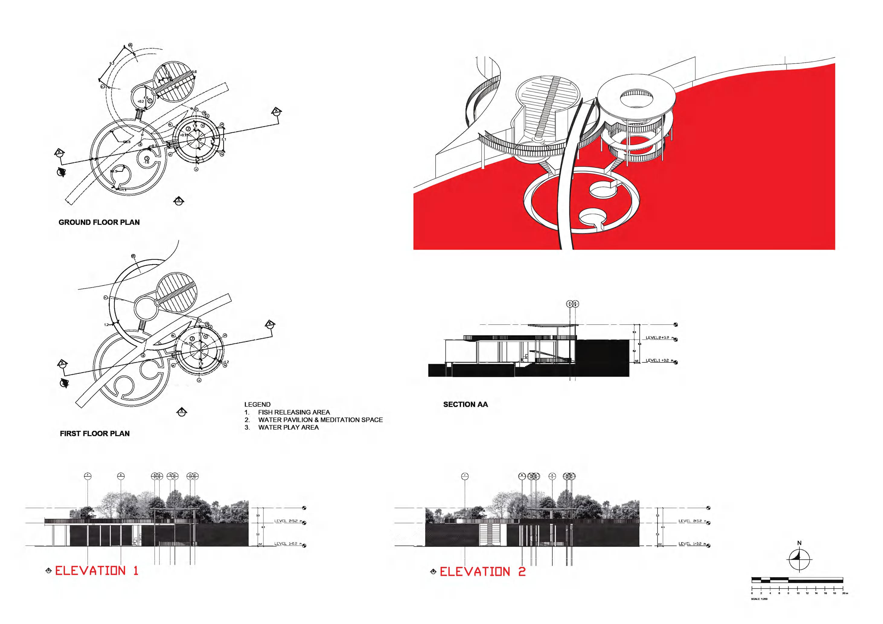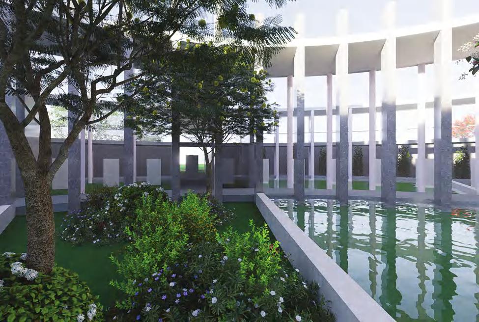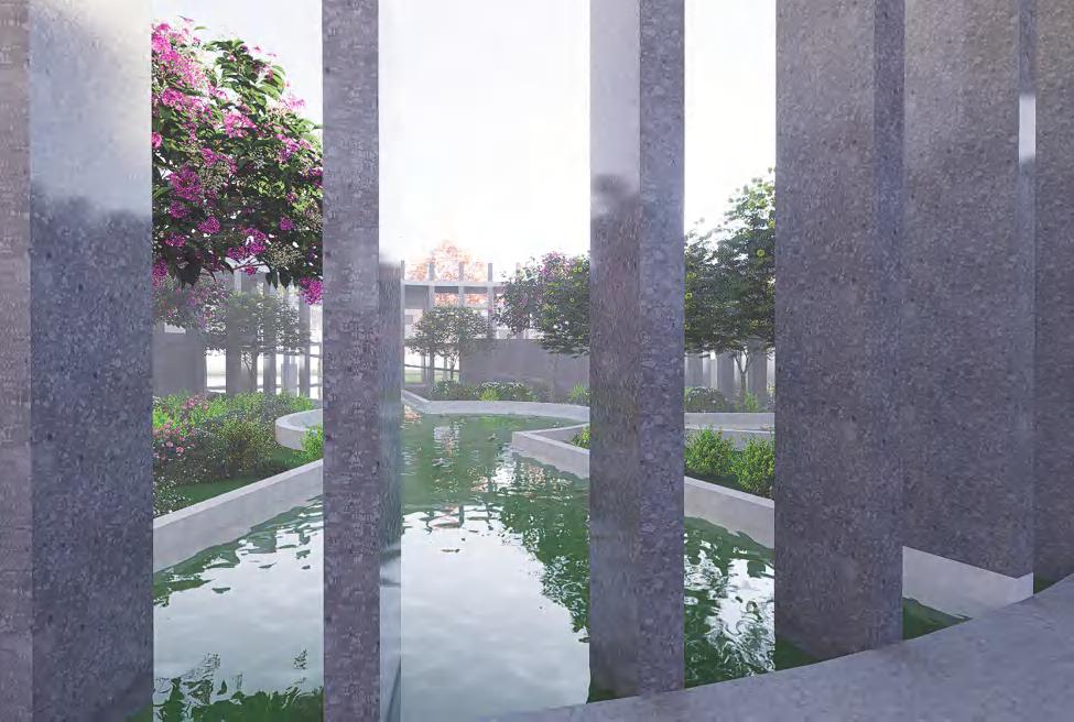 • Natural elements such as water, light and plantation, sound of water and scent of flower to bring tranquility environment and sacred purity