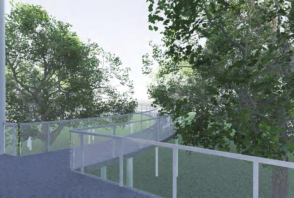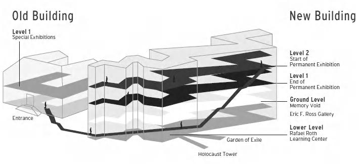 A linear path, an organizing element for a series of spaces, intersect other paths, have branches to tell the history of Holocaust