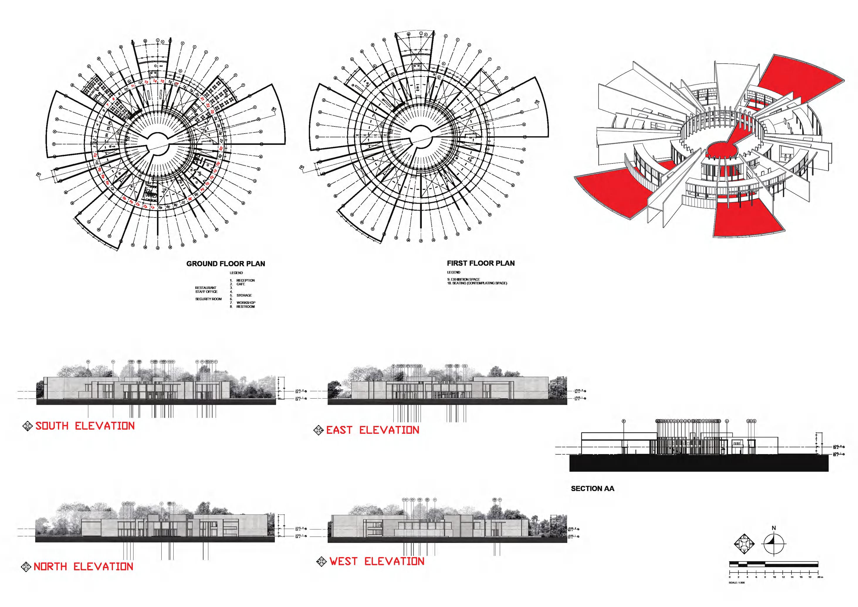 • Path leading different height, shapes, open and enclosed areas to experience various spatial experience
