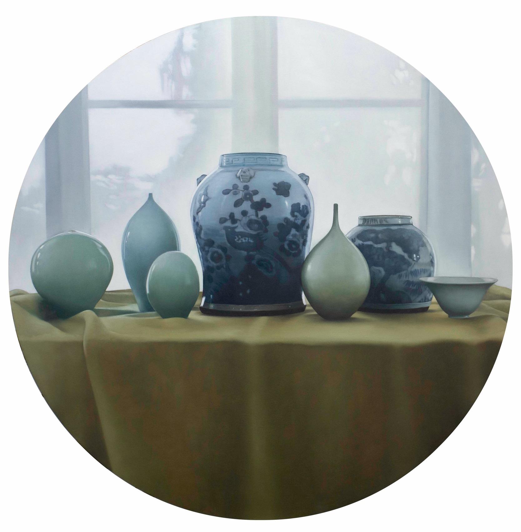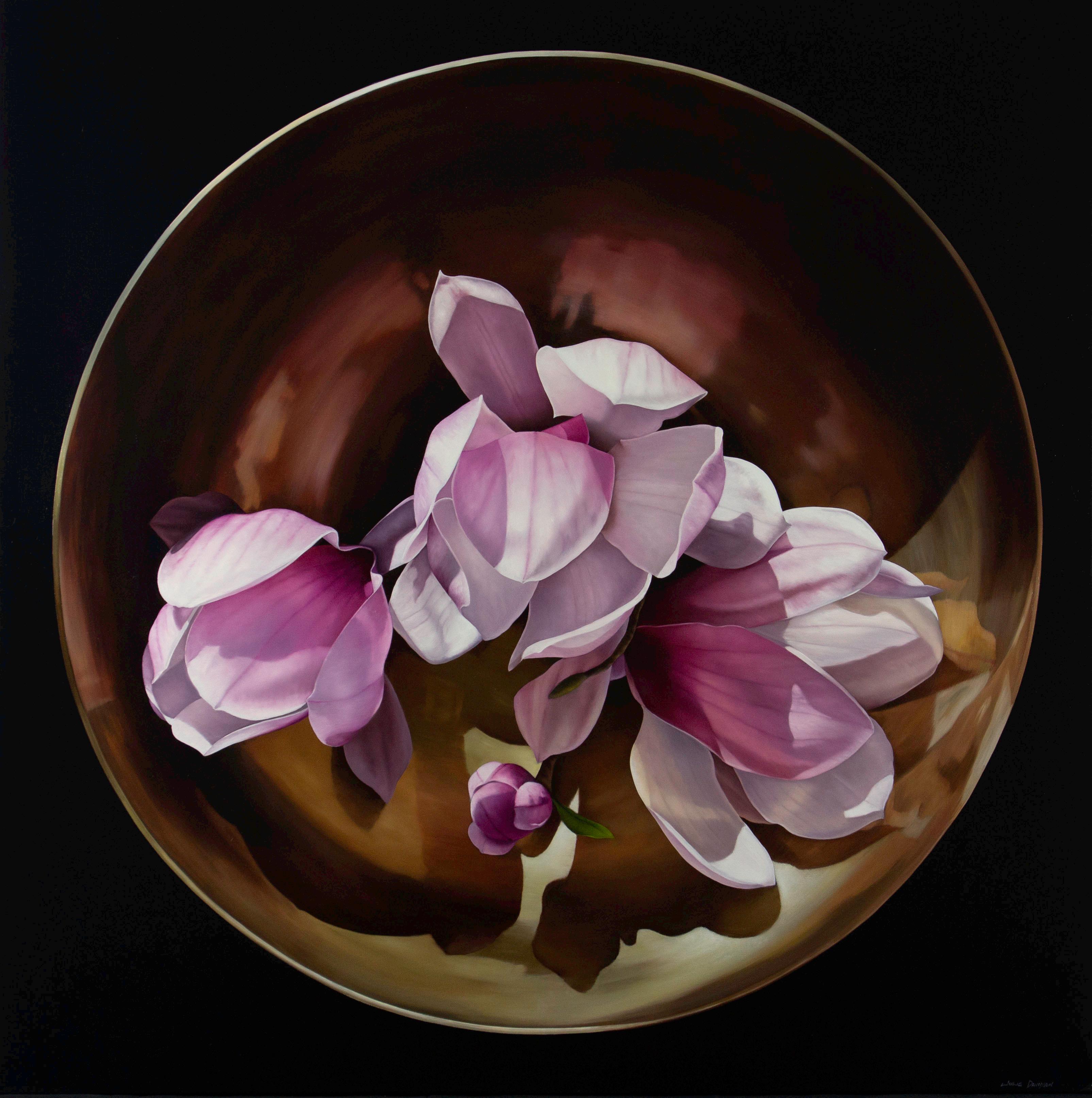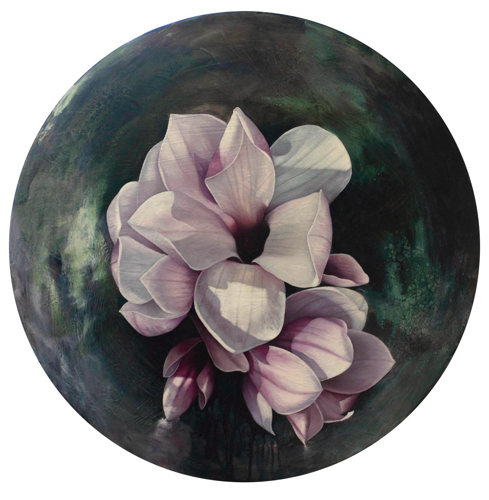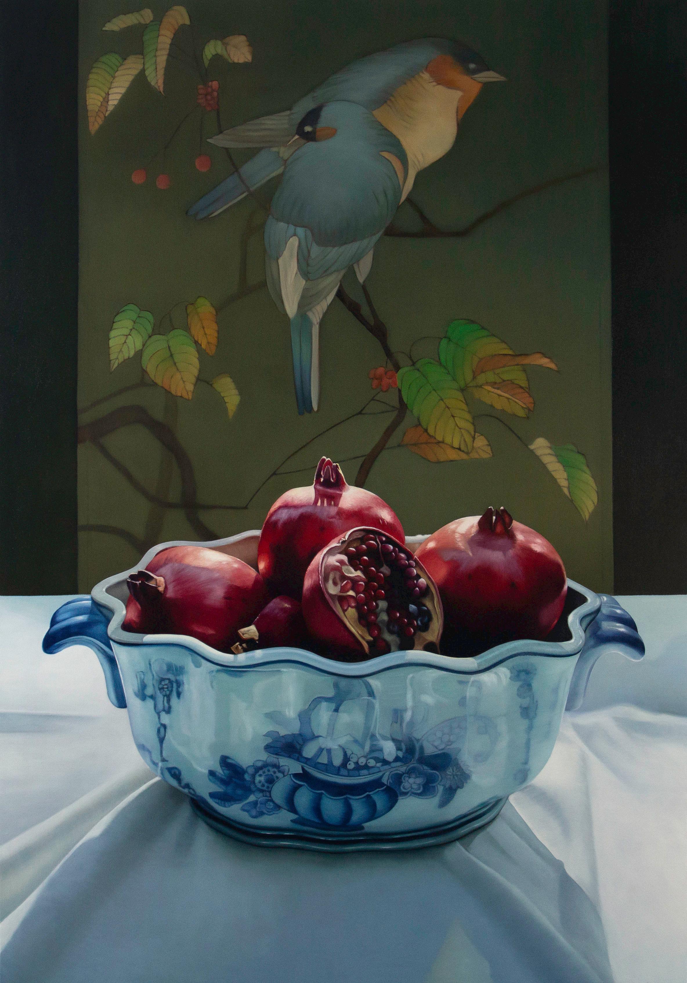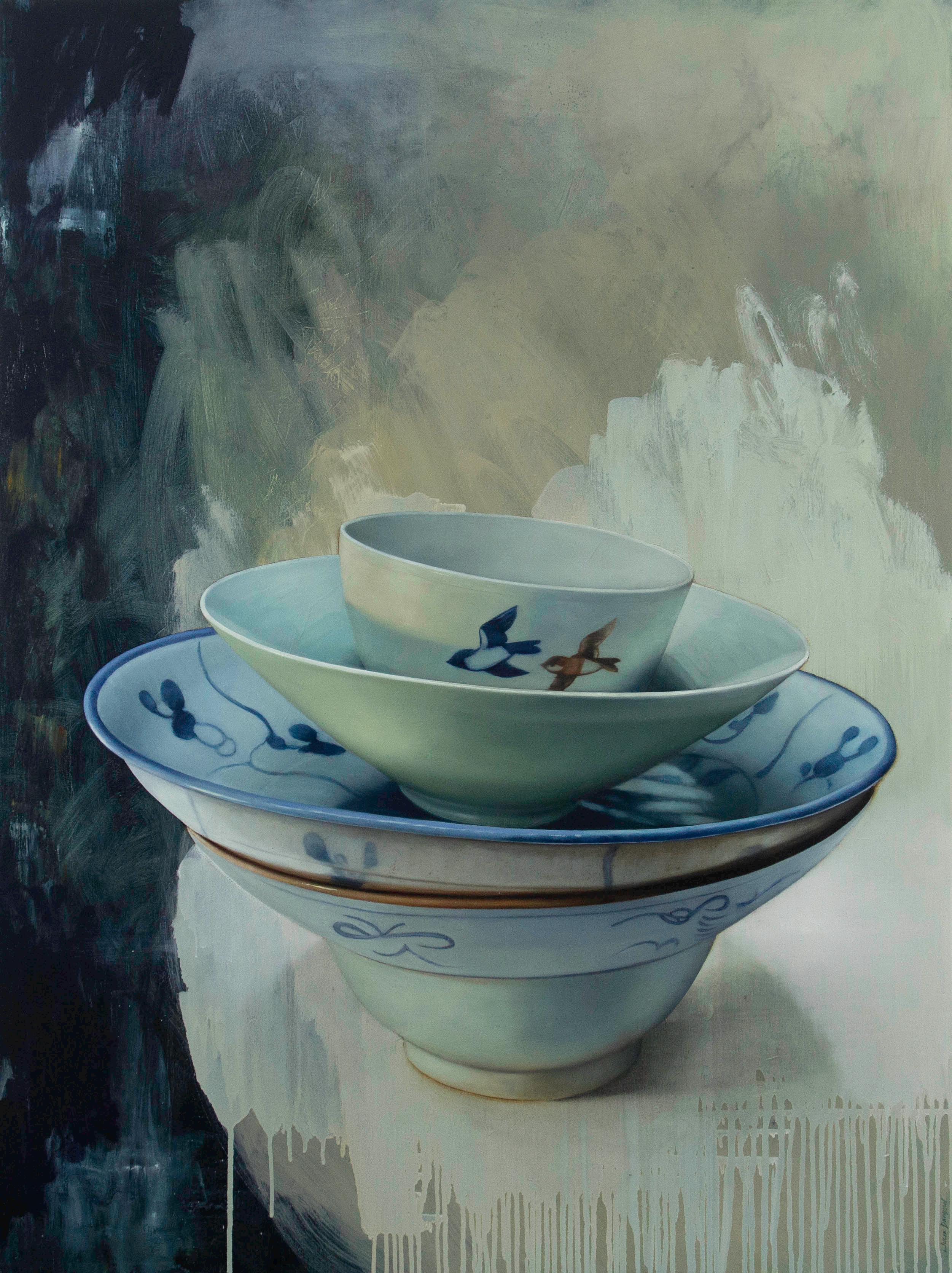 My painting journey takes me on an investigation into light and the layering of connected ideas and imagery. For this show, I’ve also enjoyed incorporating some abstracted elements to create an ambiguous and ethereal backdrop as a counterpoint to the highly representational rendering of objects.