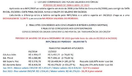 Histórico de reajuste dos servidores do CROSP nos últimos anos