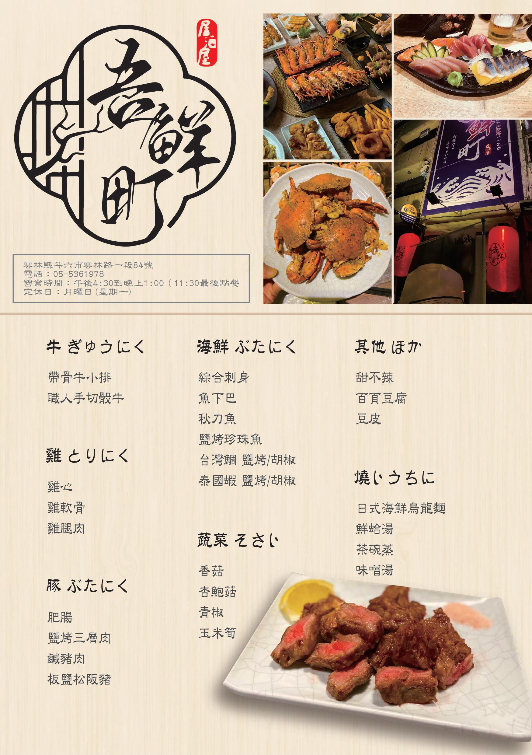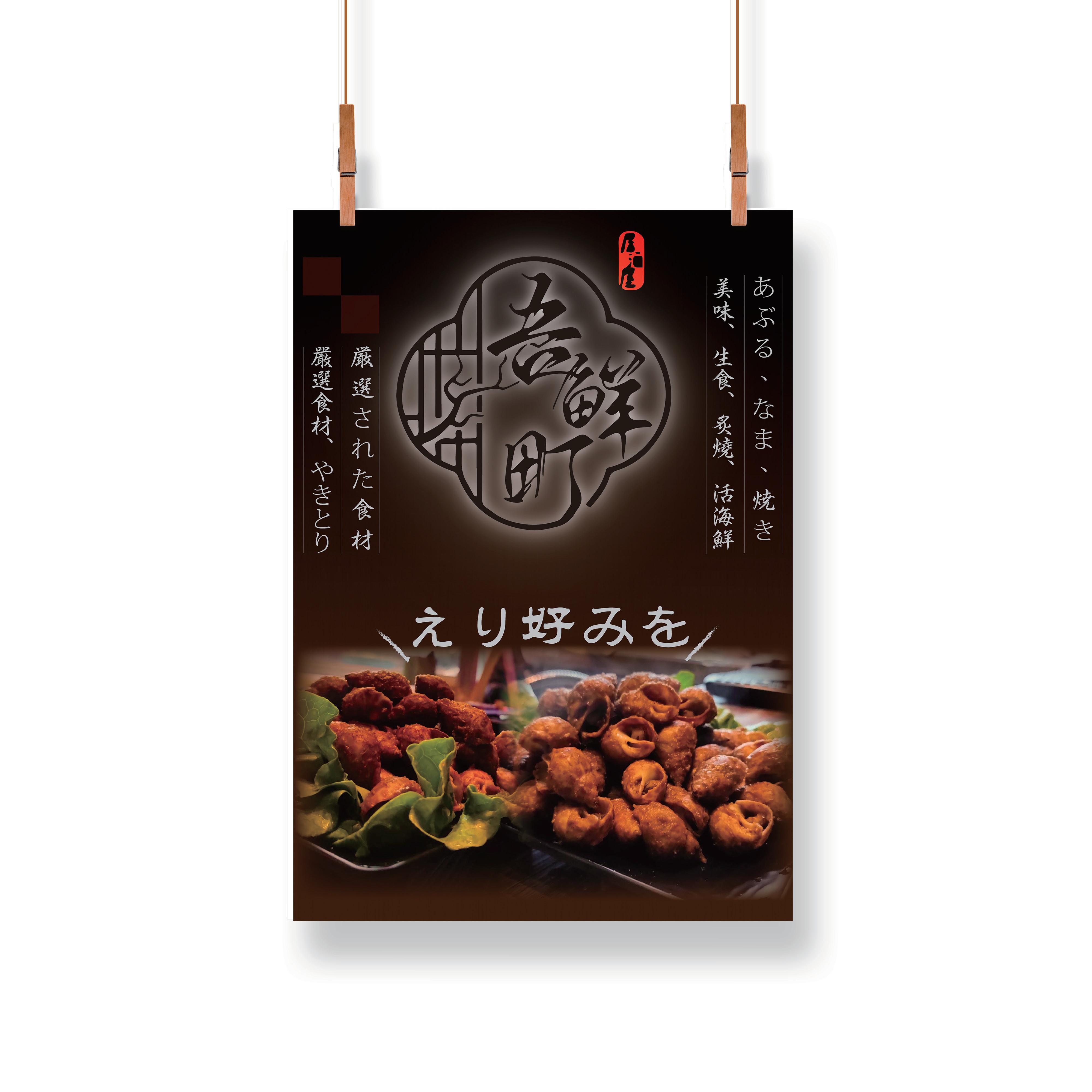 斗六的居酒屋想要改變海報及菜單,海報以暖色 調為主,讓人更有食慾,客戶想讓海報看起來更 有份量感,所以將底色加深,標準字使用外光暈 看起來像居酒屋的招牌在夜晚發光。 菜單的風格採簡約日系的風格,選擇特殊字體讓 整體更有日系感。