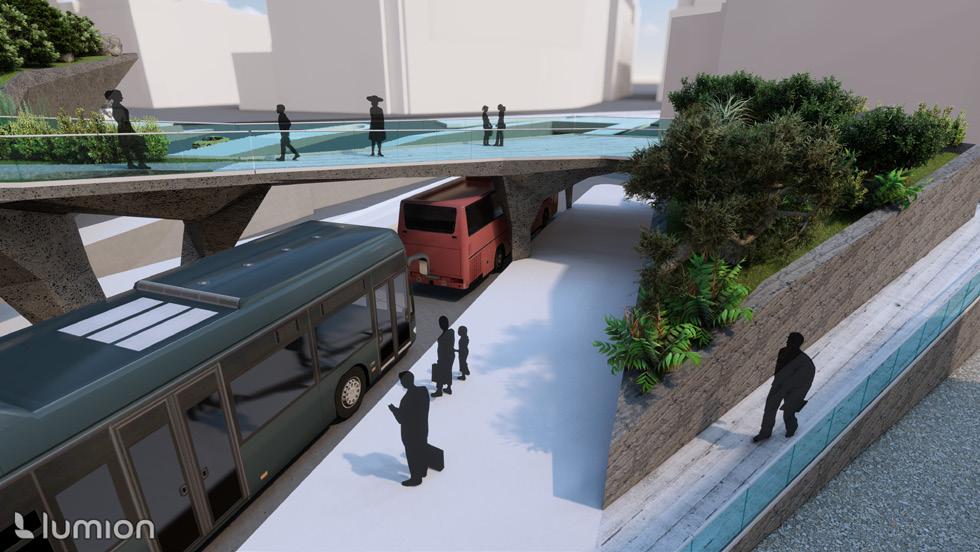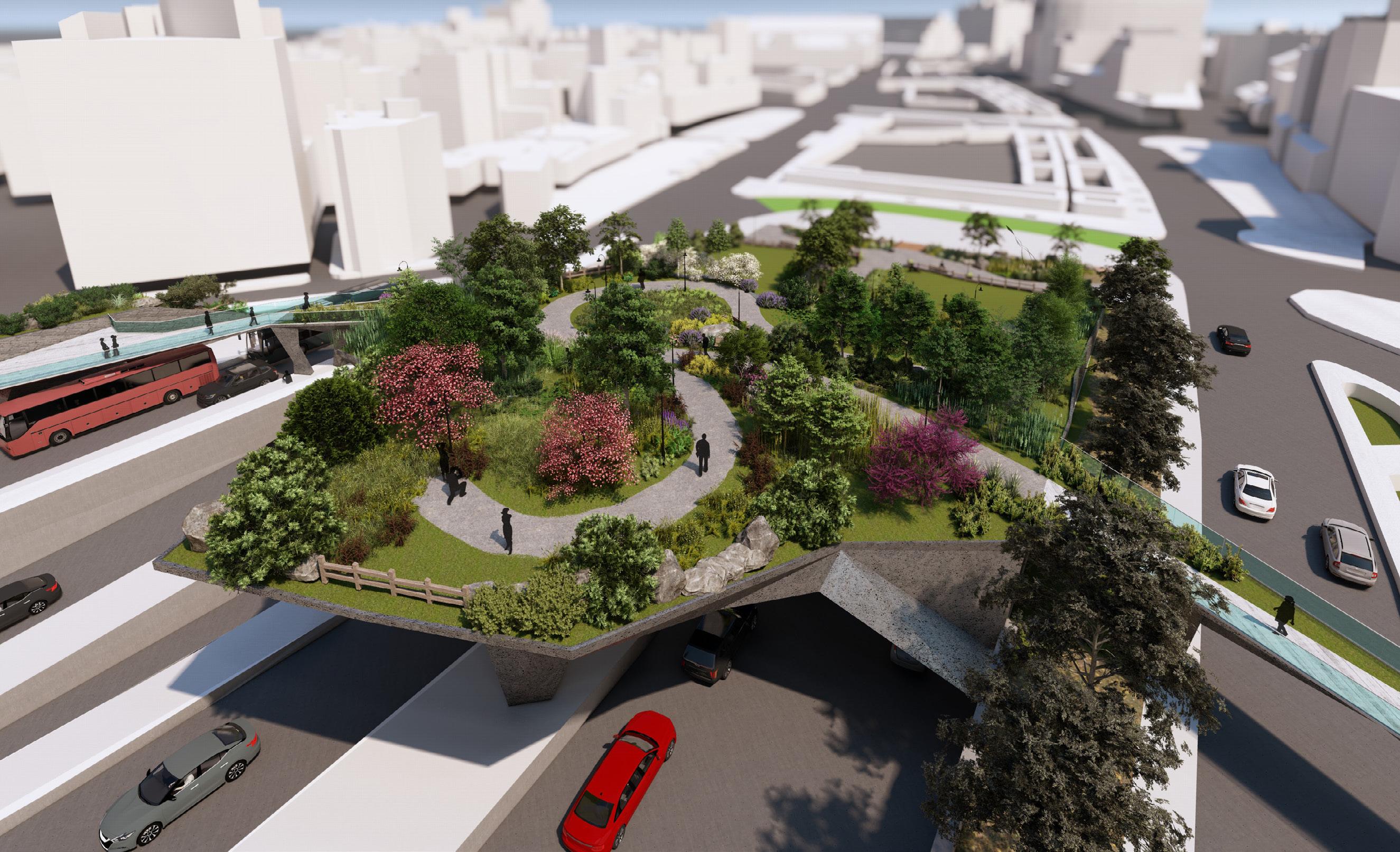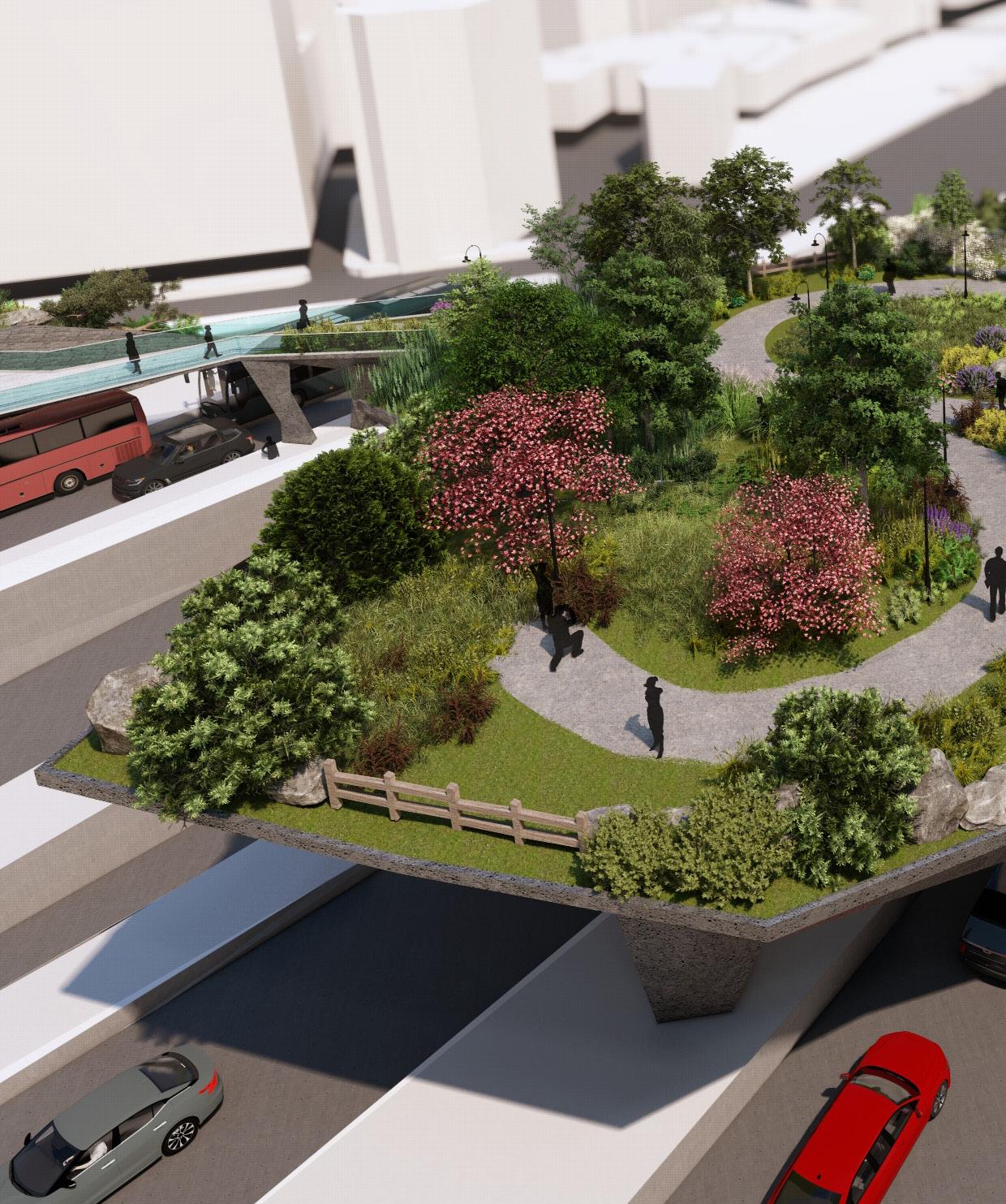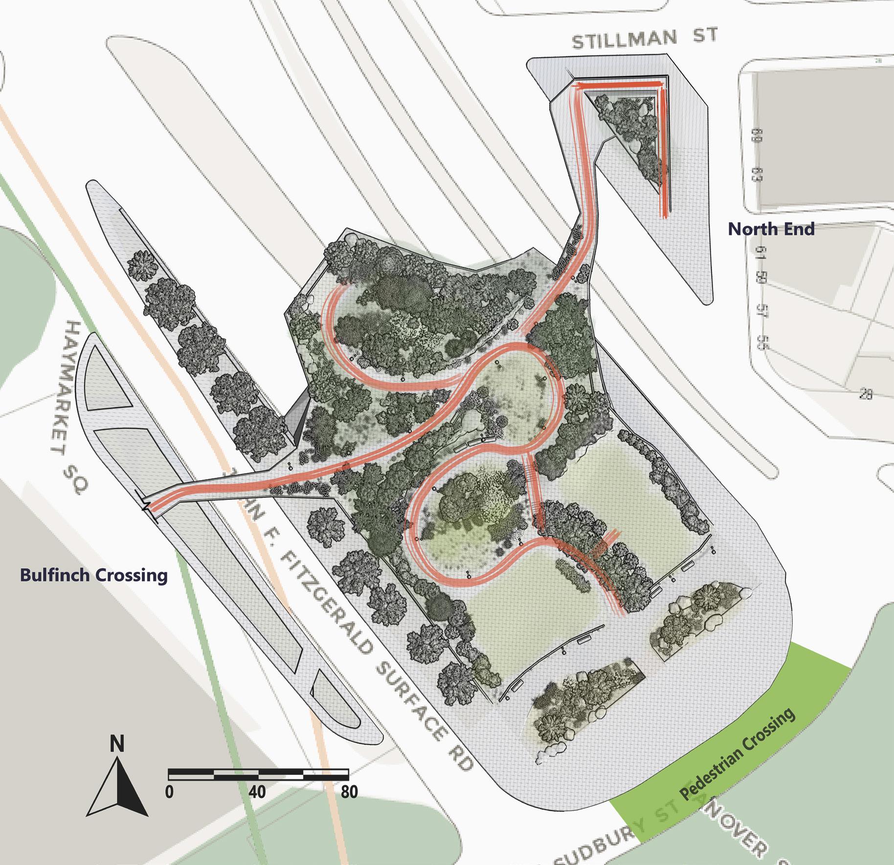 Crossing Waters serves as a capstone to the West End Green Corridor, connecting the West End, North End, Haymarket Station, Bullfinch Crossing, and the Rose Kennedy Greenway. A skypark in line with the original plan of the Big Dig, it creates a unique ecological moment in the center of Boston, all while serving many important functions.