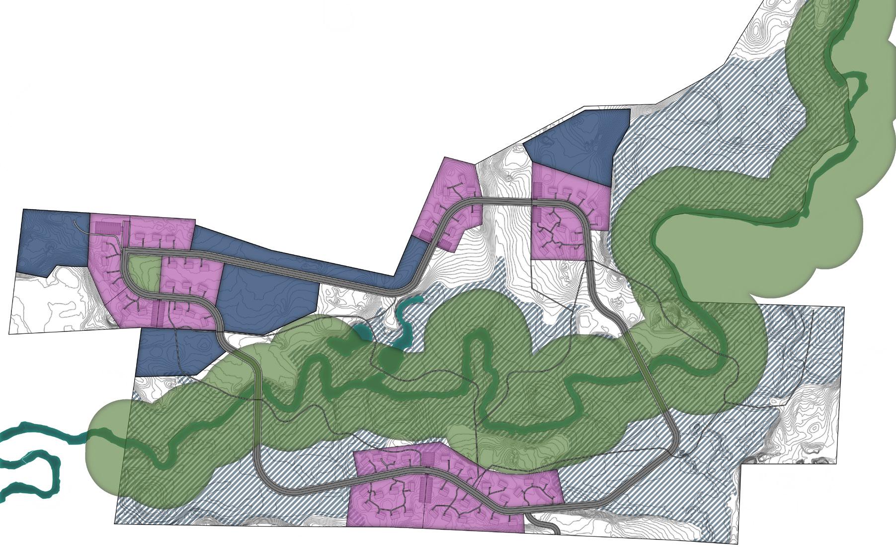 Hickory Ridge Residential was designed to maximize the what usable land there is on the property. Neighborhood clusters concentrate the development to three small areas.
