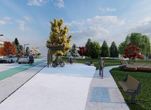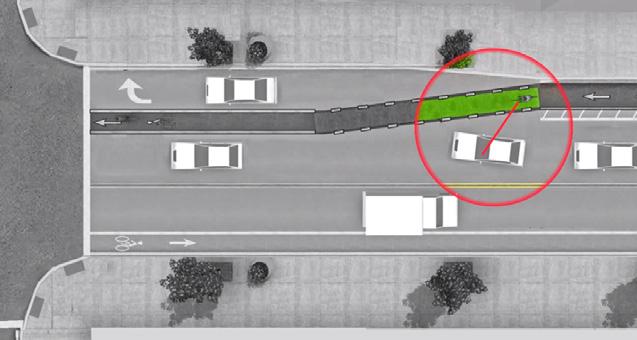 Painted and protected bike lane to facilitate non-vehicular travel