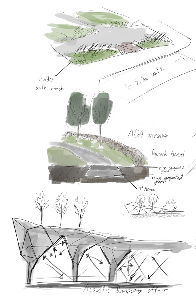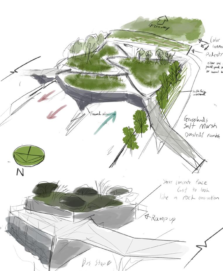 Working in groups, we developed a document of the findings of our site analysis. In addition to rendering some maps, I designed the logo for the project. Finally, we developed and rendered our own designs for sections or aspects of the greenway, presenting to the public in Boston.