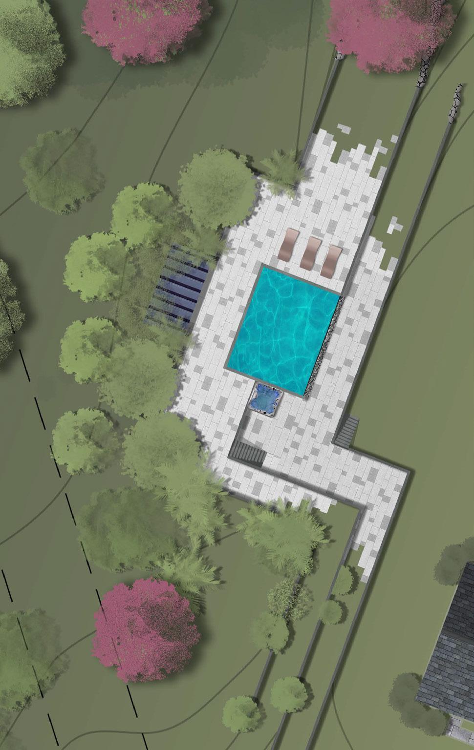 Both the central patio and the pool house where designed around philosophy of modern landscape architecture. This, juxtaposed with the more unique elements of the site as a whole creates a sense of ‘home’ centered in the property.