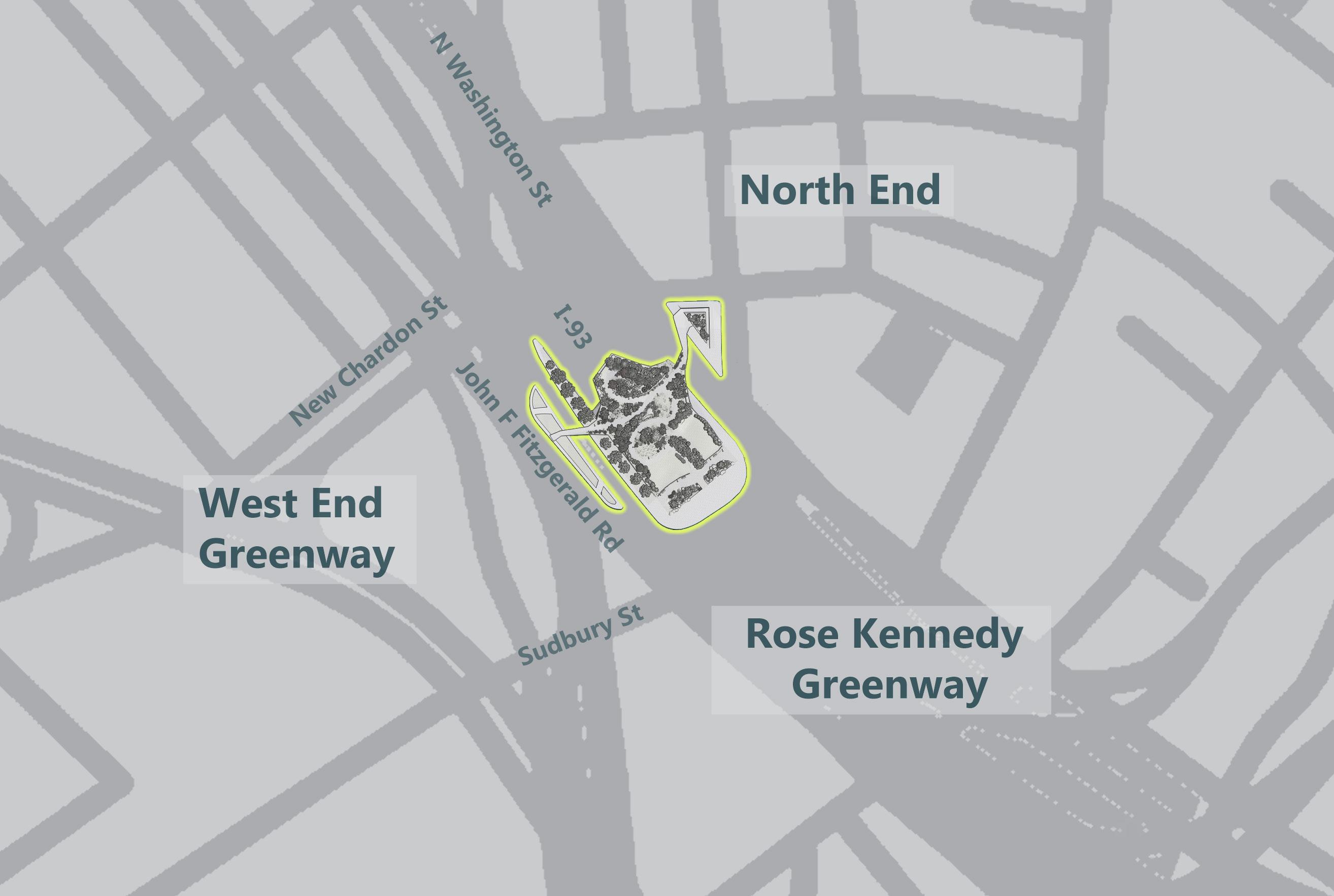 The core ideal of the West End Greenway is “Connection.” Throughout the streets of the site there are many instances of disconnections and barriers that restrict movement. One of the biggest challenges of this site is at it’s end; The I-93. A combination of wide roads and poor signage results in a challenging crossing from one section of Boston to another. ---