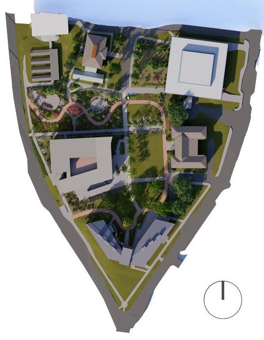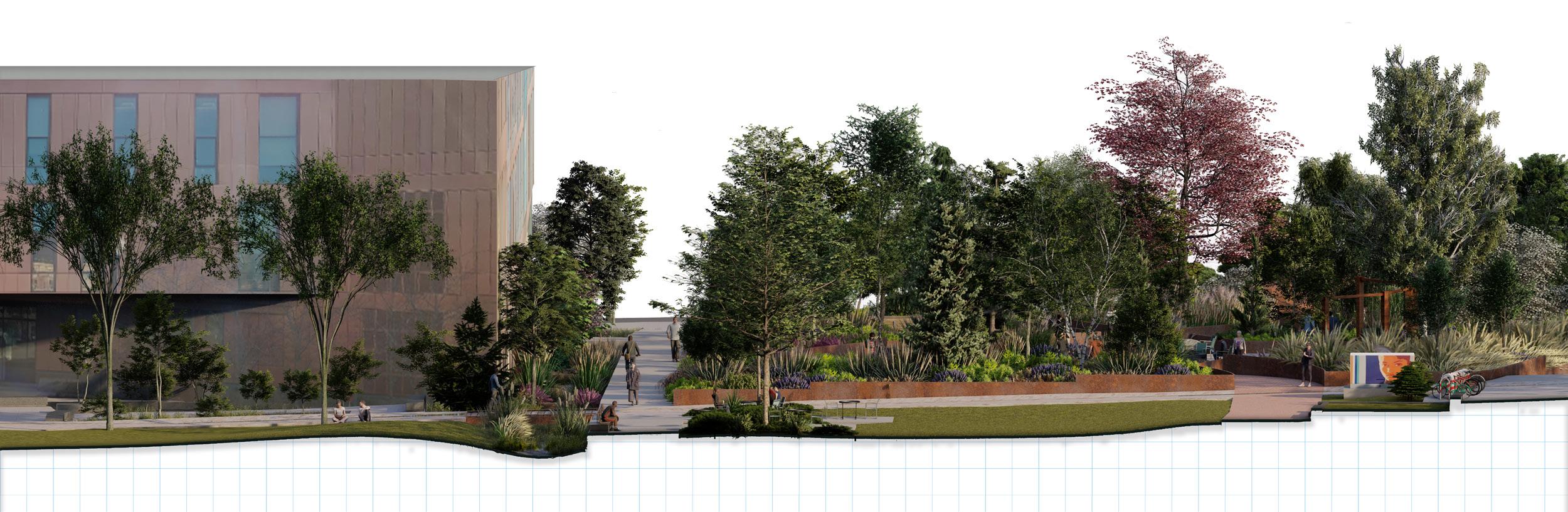 is designed with it’s own character, signified through geometry, color, material, and plantings.