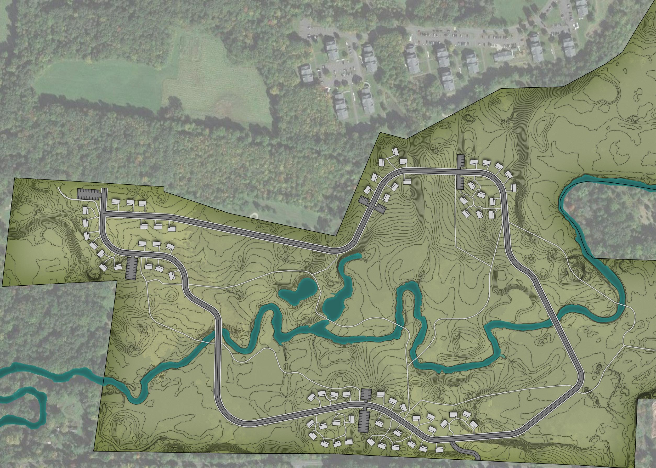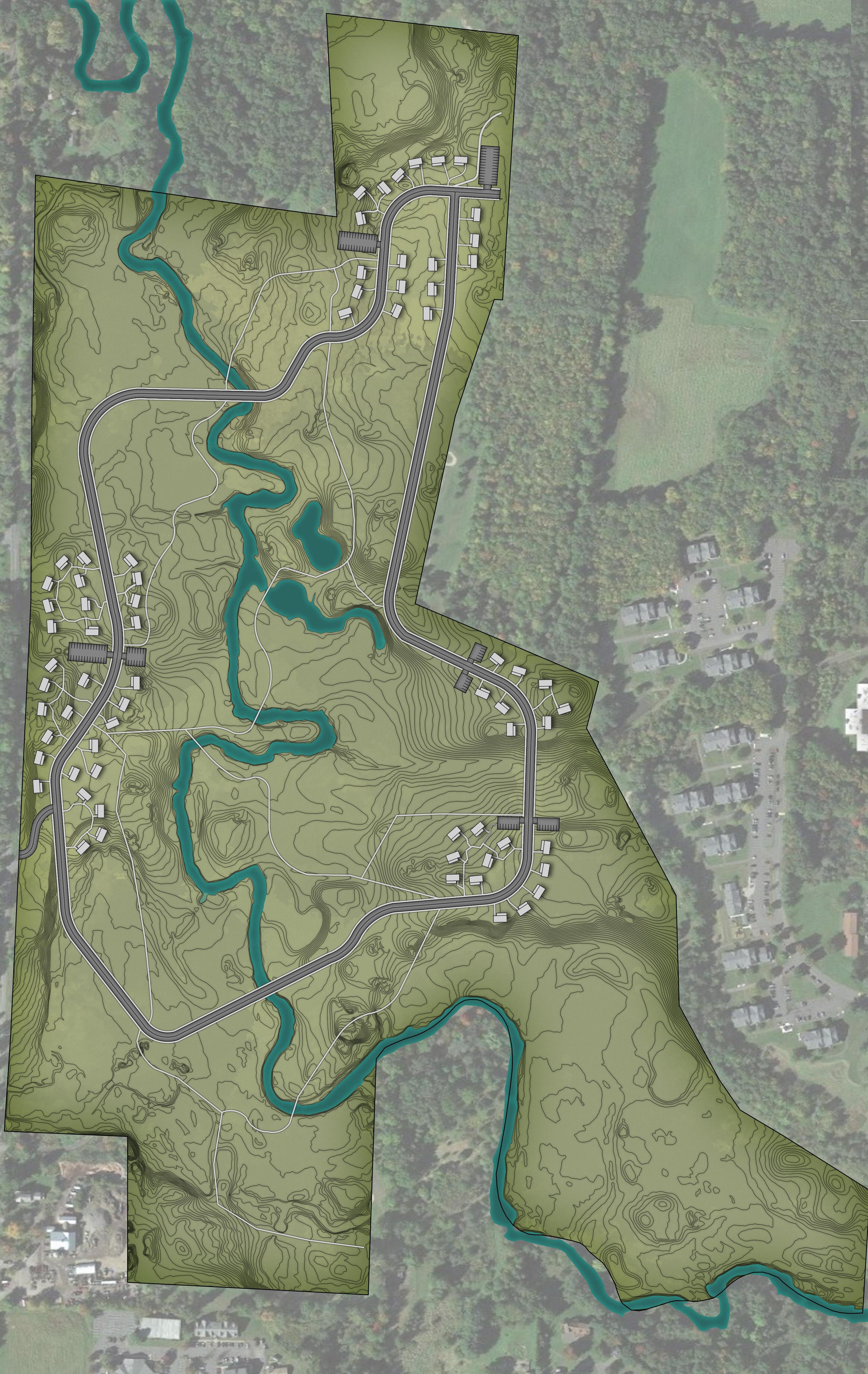 This project focused on the Hickory Ridge Golf Course in Amherst, a 150 acre greenway recently purchased by the city of Amherst for development. A central principal of this project was designing a site along side both the needs of the theoretical client, and the zoning bylaws at different levels of government.