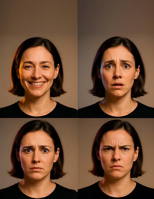 • Lista de emociones básicas (alegría, tristeza, miedo, enfado, sorpresa, calma).