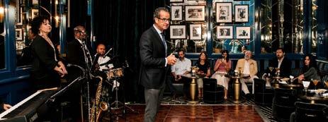 En el bar había mesas de piedra, sillas de terciopelo, un escenario y una barra. Me Audrey Heidbreder