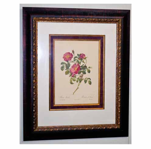 Featuring a Four (4) Piece Collection of Joseph P. ReDoute’ Floral Prints after the ReDoute’ Rose Collection. 1) One Pair (2) of Large Images features The ReDoute’ Rosier a cent-feuilles, foliace, Pink Roses with Green Foliage. The images portray a Large Pink Rose with several blooms, with green foliage in an organic setting. Each custom matted with octagonal shaped colored mats and custom Gold toned Ornate Frames. Size: Overall: 12.5”W x 15.50”H. Image: 7”W x 10”H. 2) The second pair (2) are smaller in size, the images feature one Large Rose with several blooms in rose and pink colors. Custom matted, custom framed to co-ordinate with the larger pair. Size: Overall: 9.5”W x 11.5”H. Image: 3.5”W x 5.5”H.