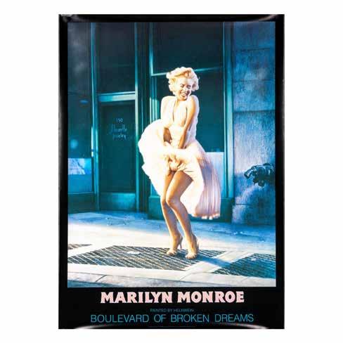 High quality poster print with matte finish. Poster features an illustrated image of Marilyn Monroe in the iconic subway grate scene from the feature film “The Seven Year Itch.” Gottfried Helnwein Co Ltd and trademark information printed along lower edge.