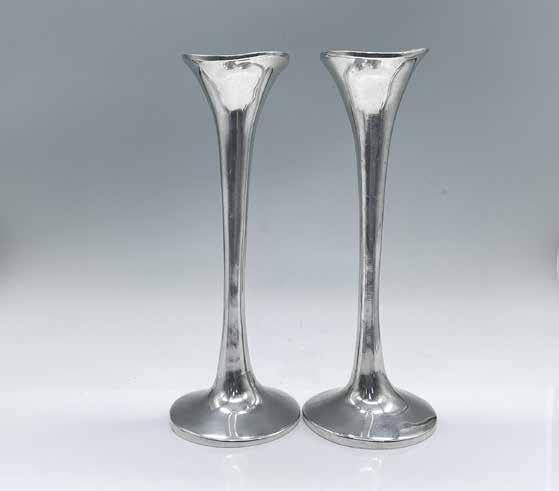 PAIR OF RENWILL ART DECO METAL CANDLE HOLDERS