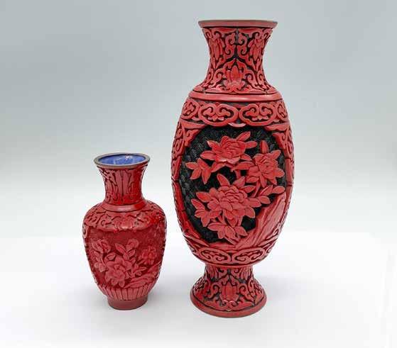 2PC VINTAGE CHINESE CINNABAR FLORAL VASES