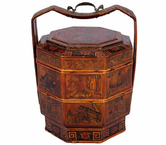 ANTIQUE CHINESE HANDPAINTED 2-TIER WEDDING BASKET