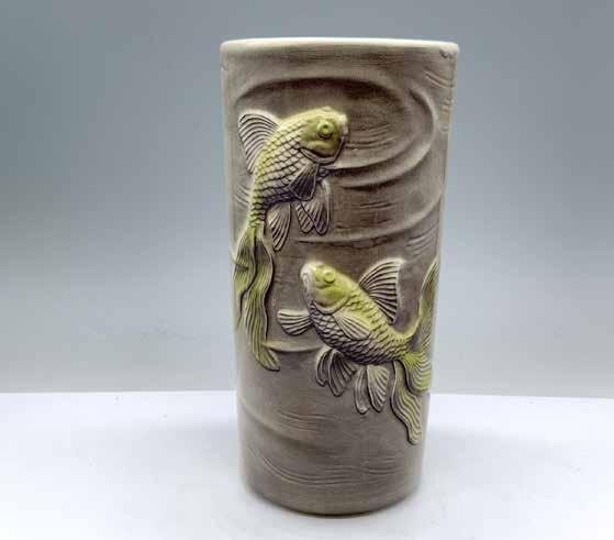 Glossy vase featuring two raised koi fish. Royal Copley mark on the bottom.