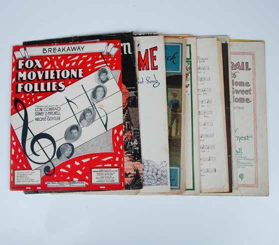 Titles include On a Blue and Moonless Night (c. 1930), I Wanna Be Loved by You (c. 1928), Jericho (c. 1929), At the End of My Trail of Dreams (c. 1929), Rain (c. 1927), Down the Trail to Home Sweet Home (c. 1920), Sometimes I’m Happy from Hit the Deck (c. 1926), Sunshine Girl of Mine (c. 1919), Piccadilly Jim (c. 1919), An Apple Blossom Wedding (c. 1947), Pal of My Cradle Days (c. 1930), Sunshine of Love (c. 1920), It Had to Be You (c. 1924), Irvin Berlin’s Always (c. 1925), I’ll be Glad to Get Back (c. 1919), Nobody Knows How I Miss You Dear Old Pals (c. 1919), My Mother’s Lullaby (c. 1923), Maggie, Yes Ma’am, Come Right Up Stairs (c. 1923), Carry Me Back to My Carolina Home (c. 1922), Sweet Southern Dream (1920), Breakaway from Fox Movietone Follies (c. 1929), My Sin (c. 1929), and Why Should I Cry Over You (c. 1922).