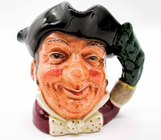 Hand painted and glazed miniature jugs. Mine Host D6513, Tam o’ Shanter D6640, Town Crier D6544, Gone Away D6545. Royal Doulton