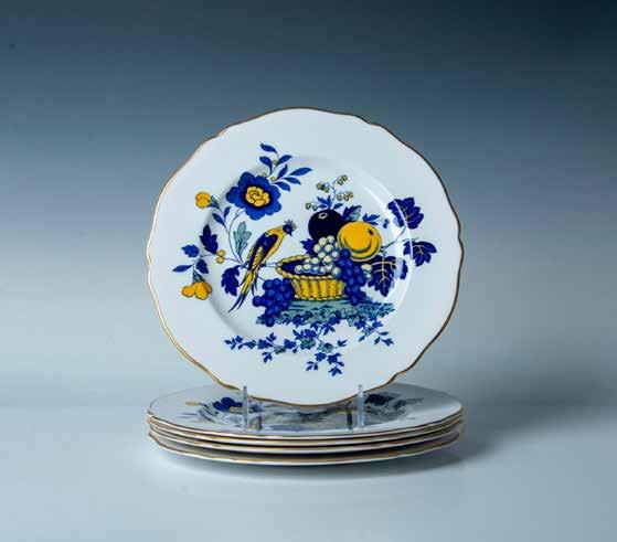 Hand-painted cockerel in a blue fishnet design #5031. Herend backstamp.