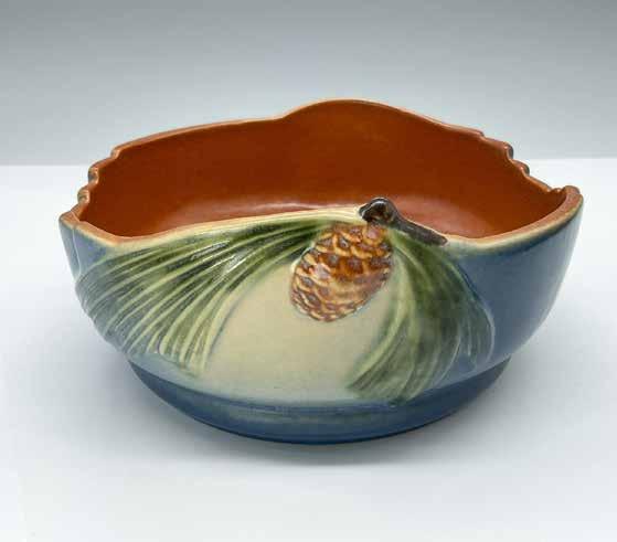 ROSEVILLE ART POTTERY BOWL, BLUE PINECONE