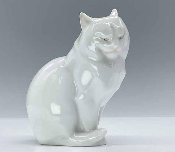 Porcelain figurine of a grey and white standing penguin. Royal Copenhagen backstamp.