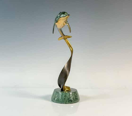 BRASS DOLPHIN SCULPTURE ON MARBLE BASE