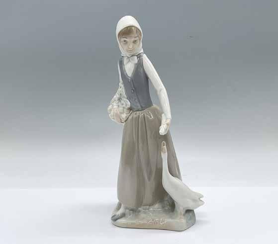 LLADRO PORCELAIN FIGURINE, GIRL WITH GOOSE & DOG 1014866