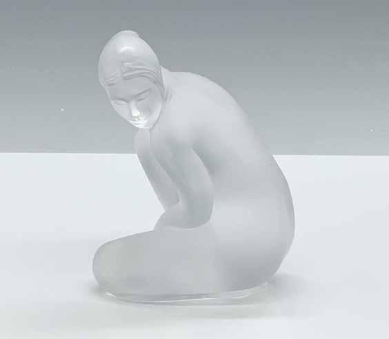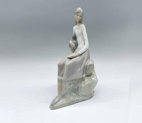Glossy figure of a young woman sitting on a rock with her arm wrapped around a jug. Nao impressed stamp.
