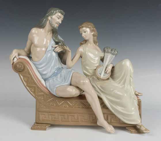 Glossy group figure inspired by the Biblical figures. Samson, a man with extraordinary physical strength who was betrayed by the beautiful Delilah. Lladro backstamp.