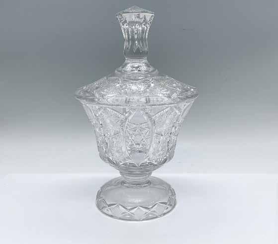 A beautiful Glandore pattern cut crystal lidded jar, featuring a crisscross and laurel motif. Waterford backstamp.