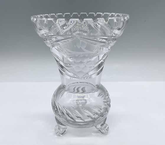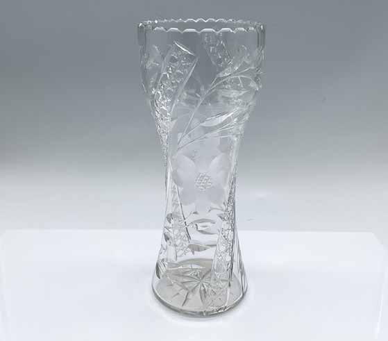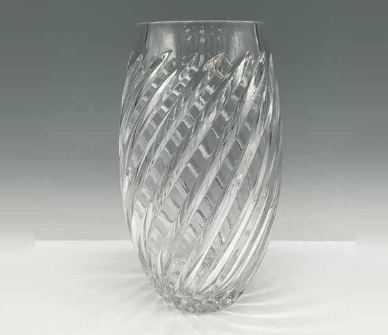 A beautiful Glandore pattern cut crystal vase, featuring a crisscross and laurel motif. Waterford backstamp.