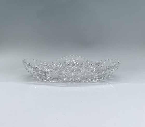 Elegant crystal bowl with crisscross, leaf and sunburst etched design. Waterford mark.