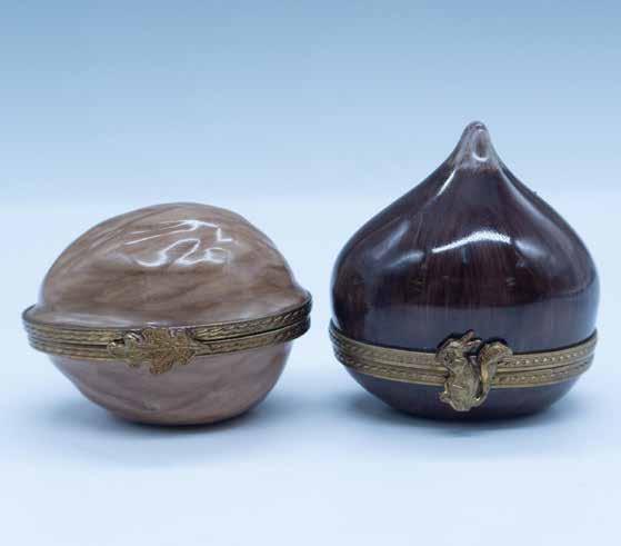Issued: 20th century Dimensions: Walnut: 1.5’’L x 2’’W x 1.75’’H; Hazelnut: 1.25’’L x 2’’W x 2.25’’H.