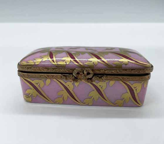 Hand painted in Limoges France. Limited editions. Features a Victorian design, decorated with painted roses and a gold pattern accent. Eggs are numbers 8 and 4 of 50. Chest is number 14 of 50. Marked Peint Main Limoges France.