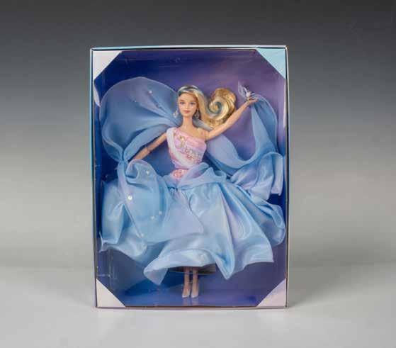 Barbie dressed in an ethereal flowing pink and blue gown adorned with sparkly sequins and stars. Part of the Essence of Nature Collection. This item has its original box: 10”L x 3”W x 13.5”H.