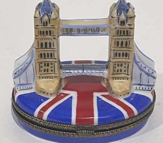 This French group features: Two Arc de Triomphe, one Luxor Obelisk placed in oval blue boxes and one presenting both of the past mentioned plus the Eiffel tower in a square blue box. All decorated with the French flag colors on the base and signed Peint Main Limoges, France SP. All part of limited editions: Arcs: 2 of 50 and 8 of 50; Obelisk: 3 of 50; Trio: 7 of 50. Largest piece Dimensions: 1.75’’L x 2.25’’W x 2’’H.