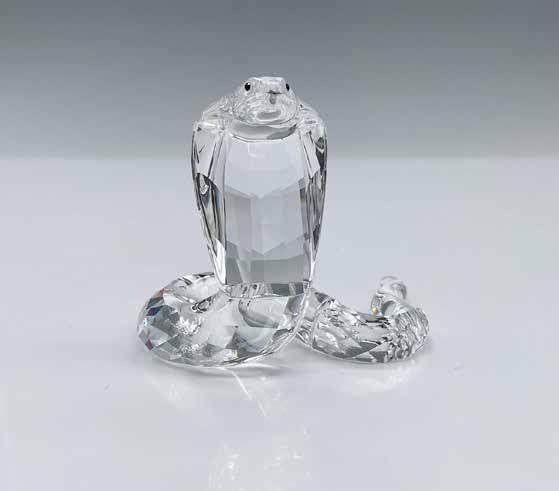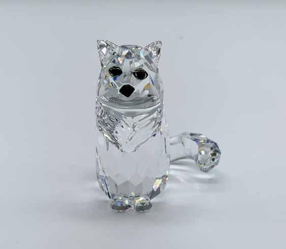 Lead crystal part of the African Wildlife series and is made from faceted clear crystal. Modeled seated, accented with jet crystal eyes. Swarovski etched backstamp.