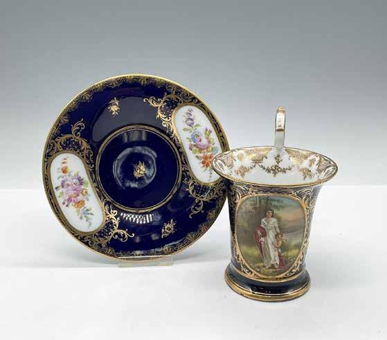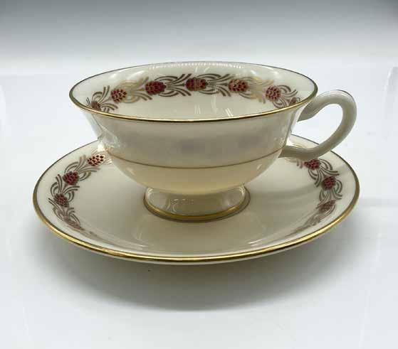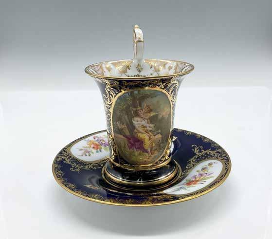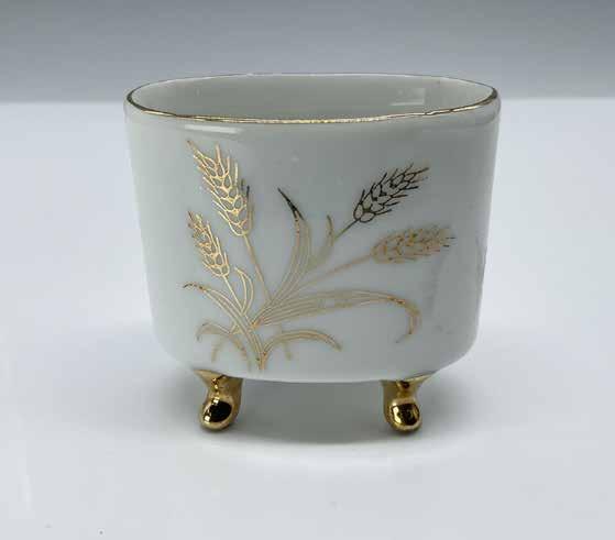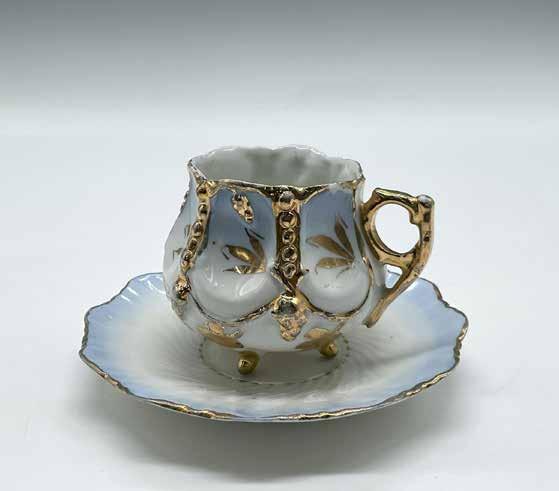 White with accents of gold gilt featuring a Colonial woman with strawberry blonde hair. This item has no reserve.